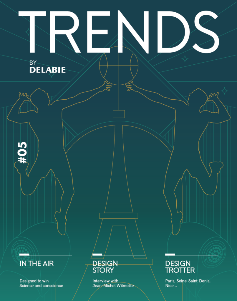 Femte nummer af Delabie's designmagasin "Trends by DELABIE", der fokuserer på design af offentlige og kommercielle steder.