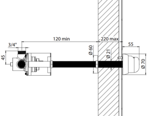 Max væggennemføring 220 mm.